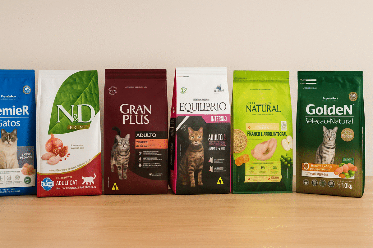 Selecionamos abaixo algumas das melhores rações naturais para gatos disponíveis no mercado, considerando composição, avaliações de tutores e reputação da marca. Todas são livres de corantes e conservantes artificiais e oferecem excelente custo-benefício.